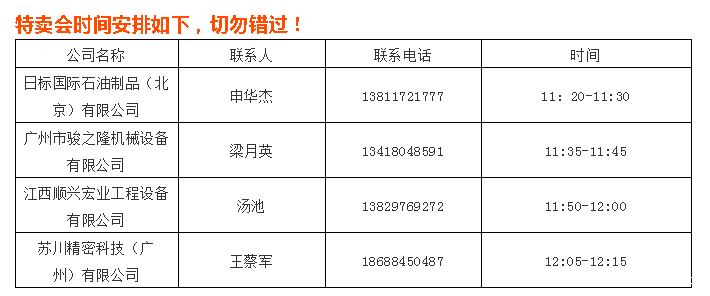 钜惠尽在8月7日上午11:20-12:15广州国际工程机械配件展特卖会。